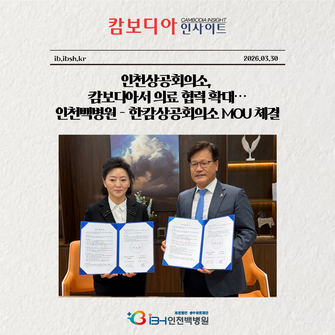 [캄보디아 인사이트] 인천상공회의소, 캄보디아서 의료 협력 확대…인천백병원–한캄상공회의소 MOU 체결